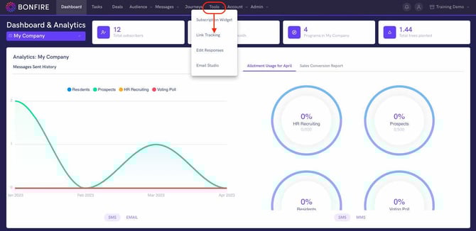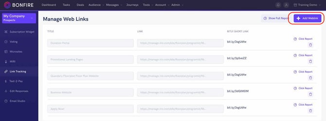 1. Go to Tools on the top of the screen and click on Link Tracking to display the Manage Web Links page.