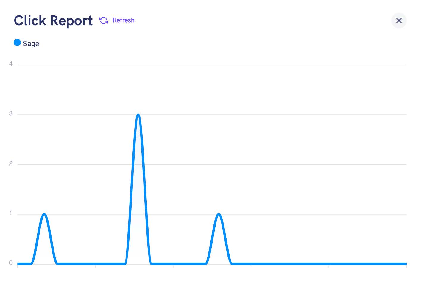 2. Click on Click Report on the far-right of the link you wish to view clicks. A pop-up of a line graph with the number of links per day by hovering over each spike.